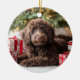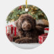 Cet adorable ornement de Noël, avec un Retriever Chocolat Labrador couché sous un arbre de Noël, est un cadeau merveilleux pour tous les amateurs de Doodle.