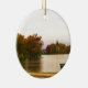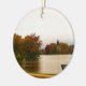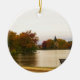 Belle vue sur le lac Fowler et les bâtiments de la vieille ville à Oconomowoc, Wisconsin. Feuilles d'automne colorées sur les arbres. Un matin paisible en octobre 2014.