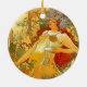 Ornement présentant la lithographie en couleur d'Alphonse Mucha, Automne (1896). Une jolie femme rousse en robe blanche tient une récolte de raisins d'une main et un bol de l'autre. Une couronne de fleurs blanches orne sa tête. Un cadeau fabuleux pour les fans d'Art Nouveau et les collectionneurs d'art tchèque.