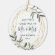 Célébrez votre premier Noël en couple engagé avec cet ornement charmant et festif. La conception ronde présente "notre premier Noël en tant que Monsieur. & Mrs." (ou votre choix de titres) en lettres de caractères modernes, entourée d'une fausse bordure en feuille d'or agrémentée de feuilles d'hiver verts. Personnalisez avec vos noms et l'année, et ajoutez une photo mariage au dos avec un cadre géométrique doré assorti.
