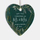 Célébrez votre premier Noël en couple engagé avec cet ornement charmant et festif. Le design en forme de coeur présente "notre premier Noël en tant que Monsieur. & Mrs." (ou votre choix de titres) en lettres de caractères modernes, entourée d'une fausse bordure en feuille d'or agrémentée de feuilles d'hiver verts. Personnalisez avec vos noms et l'année, et ajoutez une photo mariage au dos.