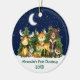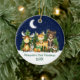Baby's First Christmas Watercolor Woodland Forest Animals Pine Trees, Moon, Starry Sky et Snow Ornament. Animals include Bear, Deer, Baby Deer with Green Bow, Moose, Raccoon, Bunny Rabbit with forest greenery Add Name.