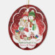 Pour votre belle-fille, un joyeux ornement de Noël. Deux femmes de neige mignonnes font des courses de Noël en photo. Portant des casquettes en laine et des foulards, dont un aux couleurs de l'arc-en-ciel, l'adorable illustration les dépeint entourés de cadeaux et de sacs, et en train de gigoter la note qu'ils tiennent dans leurs mains. Ce joli ornement en céramique lesbienne peut être personnalisé avec leurs noms et date sur le devant, et votre propre salut spécial sur le dos.