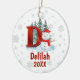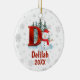 Lettre initiale personnalisée D ornement de Noël bonhomme de neige. Prénom et année personnalisables.