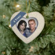 Ce ornement en forme de coeur avec une impression de lin est parfait pour un 4ème anniversaire de mariage (qui est traditionnellement célébré avec des articles en lin) ou toute autre occasion. Ajoutez votre propre photo au cadre du coeur, puis sur le dos personnalisez-la avec un message personnalisé. Bien que le texte sur le ruban bleu indique "4 ans" pour ceux qui célèbrent quatre ans de mariage, il peut être changé à tout autre texte court de votre choix (comme "Je t'aime"). Ce design a un léger look 3d — notez que l'ornement lui-même est un design imprimé à plat.