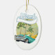 Le logo Miami Sunset d'une voiture classique de style vintage à la tombée de la nuit.