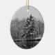 Cette décoration est ornée d'une photo en noir et blanc représentant la beauté des arbres à feuillage persistant par un lac pendant une journée d'hiver enneigée. Il transmet la paix et la tranquillité qui vient avec une couverture fraîche de neige et le pays féerique qu'il crée - vraiment un Wonderland d'hiver! En regardant de près, le spectateur remarquera que la photo a été prise alors que la neige tombait (et tombait), ajoutant des effets uniques à cette scène idyllique. Lieu : Illinois, USA Photographie © Wafa Y. Dahdal - Tous droits réservés.