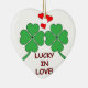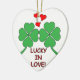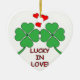 Heureux amoureux. Dessins de trèfle à quatre feuilles avec des formes cardiaques flottant sur eux.
