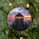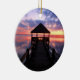 À l'avant, le phare brille dans le ciel sombre, encadré d'arbres, tandis que l'arrière présente le belvédère à Whalehead.