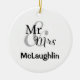 Décor de vacances personnalisé pour le couple heureux avec nom de famille et année mariage. Trois lignes de texte personnalisable sont présentées dans cet ornement.