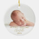 Mettant en vedette un ours en peluche mignon dans une montgolfière rose avec des flocons de neige. Personnalisez avec votre photo de bébé préférée, votre nom et votre date pour créer un souvenir unique et un cadeau pour un premier Noël. Un beau souvenir pour célébrer votre nouvelle arrivée ! Conçu par Thisisnotme©