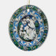 Élégant classique, art raffiné de la Renaissance dynamique, chef-d'oeuvre de Bottega della Robbia ( Florence - Italie ) en blanc, bleu, vert, marron.Une scène de la nativité antique, stable, animaux, arbres, chérubins ailés dans le ciel bleu sur une couronne florale décorative jaune vif, verte.