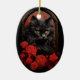 Chat noir Maine Coon avec fleurs rouges style Art nouveau