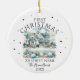 Marquez la magie de votre premier Noël dans une nouvelle maison de plage avec ce charmant ornement de Noël en céramique blanche ronde avec une illustration nautique avec la mer et une maison. Personnalisez-le avec votre adresse, votre nom de famille ou de couple, et l'année pour créer un souvenir festif que vous allez chérir pendant des années. Un cadeau ou une mémoire attentionné pour votre première saison de vacances dans un nouvel endroit.