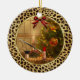 A wonderful unique art numérique makeup themed double sided holiday ornament ! This round double sided ceramic ornament feels a lovely digital art image of a Christmas or Holiday tree with a lipstick and two makeup brushes on both sides. It is framed with trendy cheetah animal print art border with golden digital trimmings, topped off with a red and gold bow! It's a beautiful makeup themed ornament for someone who loves makeup! Great from or for a makeup artist ! This design is available in our shop personalized on the back too ! For more makeup themed holiday cards and venin please please visit our shop !
