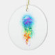 Grande méduse irisée, artistiquement dessinée, brillante, avec de longues tentacules sur le blanc, peinte sur l'arrière - plan multicolore. Méduse arc-en-ciel.