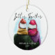 Better Together, personnalisation de l'ornement des arbres de Noël. Cette aquarelle a une illustration tendance d'un couple portant des chapeaux santa. "Better Together" est écrit à la main dans un script moderne et le modèle est prêt pour vous à ajouter vos noms et l'année. Double face avec le même design de part et d'autre.