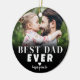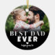 Meilleur Père Jamais Personnalisé Ornement Photo de Noël. Cette décoration personnalisée est une façon significative de célébrer papa pendant la saison des fêtes. Avec une photo différente de chaque côté, c'est un souvenir chaleureux qui capture les souvenirs préférés et ajoute une touche personnelle à votre arbre de Noël. Le devant présente "Best Dad Ever" en typographie audacieuse et moderne avec une photo—parfait pour un moment de douceur entre papa et ses enfants. Vous pouvez également passer à "Best Dad By Par" pour les amateurs de golf. L'arrière comporte une deuxième photo avec un dégradé noir doux en bas, où l'année et un petit accent du coeur sont affichés. Le design est propre et moderne, avec des polices et des couleurs entièrement personnalisables. Un cadeau parfait pour Noël ou juste pour rappeler à papa combien il est aimé à chaque fois qu'il regarde l'arbre.