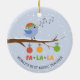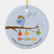 Célébrez la période des fêtes avec un cadeau personnalisé et attentionné pour votre professeur de musique préféré. Cet ornement de Noël charmant présente un oiseau bleu mignon chantant un air de fête, entouré de notes de musique, de neige qui tombe et d'une branche enneigée ornée de décorations colorées. La typographie de style rétro qui dit « Fa La La » capture l'esprit de la saison. Personnalisez l'ornement avec votre propre texte, tel que « Meilleur professeur de musique du monde », pour créer un souvenir unique que votre professeur chérira pendant des années.