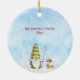 L'ornement des arbres de Noël avec une scène de gnome d'hiver enneigé avec les mots "Meilleurs voeux pour un joyeux Noël" sur le devant et votre texte personnalisé sur le dos.