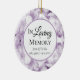 Honore ton bien-aimé disparu avec le joli ornement en céramique violet Hydrangea Flowers Watercolor Memorial Keepsaké Round. Personnalisez-le avec le nom du défunt, les dates de naissance/décès et l'image à l'envers. Cet élégant ornement d'hommage fleuri personnalisé présente une photo florale peinte numériquement aquarelle de pétales de fleurs d'hydrangée violet clair avec un arrière - plan blanc. Texte En Mémoire Amoureuse.