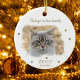 Ce ornement "toujours dans nos coeurs" comporte une photo personnalisée et un nom avec la date de mort.