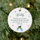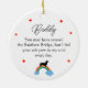 Cet ornement simple comporte un nom de chat personnalisé, un message et un arc-en-ciel.