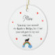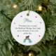 Cet ornement simple comporte un nom de chat personnalisé, un message et un arc-en-ciel.
