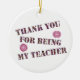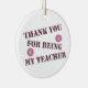 Offrez à votre professeur un cadeau de remerciement qui leur permet de savoir à quel point ils sont spéciaux. Cet ornement présente les mots "merci d'être mon professeur" dans un motif en mosaïque rose et violet avec deux fleurs rose vif. Le dos de l'ornement permet d'avoir beaucoup d'espace à personnaliser avec le nom de l'enseignant, l'année, la photo, ou tout ce que vous souhaitez ajouter.