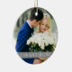 Joyeux Et Marié Typographie Premier Ornement Photo En Céramique De Noël. MERRY et MARRIED écrit en blanc sur un arrière - plan noir avec des flocons de neige, rend l'ornement de Noël élégant et très festif. Le design peut être entièrement customisé en changeant la photo et le texte. Pour toute personnalisation supplémentaire, n'hésitez pas à me contacter à l'adresse mypaperlove2021@gmai.com