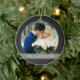 Joyeux Et Marié Typographie Premier Ornement Photo En Céramique De Noël. MERRY et MARRIED écrit en blanc sur un arrière - plan noir avec des flocons de neige, rend l'ornement de Noël élégant et très festif. Le design peut être entièrement customisé en changeant la photo et le texte. Pour toute personnalisation supplémentaire, n'hésitez pas à me contacter à l'adresse mypaperlove2021@gmai.com
