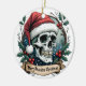 Celebrate a Christmas with twist of dark humour ! This unique ornament objets a grinning skull à Santa, surrounded by holly and snowflakes, with the words "Merry Macabre Christmas." Idéal for those who love to combine the fixve spirit with a gothic edge, making it a standout addition to any unconventional holiday decor.