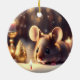 Cet adorable ornement de Noël est orné d'une petite souris sur une table décorée de Noël avec des bougies brillantes. Les lumières dansent. Un cadeau de Noël mignon, petit et personnalisé pour tous !