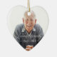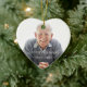 Souvenez-vous et chérissez votre être cher avec ce personnage "souvenir d'amour" photo commémoration ornement. Le design comprend la conception photo pour afficher votre propre photo spéciale. "In Loving Memory" est affiché en calligraphie et personnalisé avec la date de naissance et la date de passage. L'envers a un texte de personnalisation supplémentaire et un coeur.