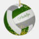 Ce ornement de volley-ball girly présente l'image réaliste d'un volley-ball qui a des panneaux verts, gris et blancs et un arrosage de minuscules étoiles en faux or de parties scintillant, sur lequel vous pouvez customiser le nom du joueur sur le front et l'année commémorative à l'arrière - par katz_d_zynes