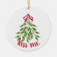 Embrasse-moi sous le faux orteil. Métropole vert aux baies blanches enveloppé d'un ruban rouge vif. Déchirant du plafond. Ce design modifiable peut être transféré sur n'importe quel produit ou édité. changer l'arrière - plan ou ajouter des photos. Un aquarelle, effet peint fait un grand cadeau.