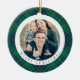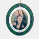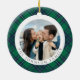 Modern Green Plaid Photo Christmas Ceramic Ornament.