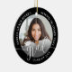 Commemorate the graduate's achievement with a custom 2 photo graduation round ceramic Christmas ornament. The pictures and wording on this template are simple to personalize and can be different or the same on front and back. All colors can be easily customized with the Zazzle Design Editor tool. In addition to the grad's name, school and class year, include any wording of your choice, such as a favorite inspirational quote, congratulations, thanks mom and dad, or other text. The simple modern black and white design features a mortar board cap, trendy script calligraphy, elegant classic typography, and two photos of your choice, such as senior pictures or images from the commencement ceremony. This ornament makes a unique and thoughtful graduation keepsake gift idea. Congratulations to the graduate!