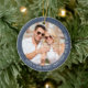 Moderne 2 photo bleu ornements de Noël modèle pour personnaliser avec vos noms et votre année ou autre texte. C'est un souvenir parfait pour le couple et leurs parents de se souvenir du premier Noël comme M. et Mme Customisent facilement avec votre nom de famille et l'année. Joyeuses fêtes !