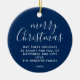 Un Blanc Bleu Minimal Souhaite Joyeux Joyeux Script Ornement En Céramique. Script blanc sur arrière - plan bleu foncé. Ajoutez votre texte et faites un ornement de Noël tendance et chic.