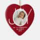 Cet élégant ornement en forme de coeur My First Christmas as Tante Photo Ornament comporte le mot "JOY" sur un arrière - plan rouge. Facilement personnalisable avec votre photo, nom et année.