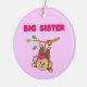 Un mignon singe avec une fleur rose balançant par la queue d'une branche et un texte rose dit "Grande Soeur" sur les T-shirts, porte - clés, cartes, autocollants, sacs fourre-tout, magnets, mousepads, coussins et autres vêtements et cadeaux de grande soeur !