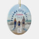 Monogrammed personnalisé Panama City Beach, ornement souvenir Floride avec date d'année personnalisable et une scène de bord de mer ensoleillé montrant une famille heureuse profiter du beau surf, soleil et sable de Floride. Parce que le texte sur ce ornement est entièrement personnalisable vous pouvez changer le nom à n'importe quelle plage de votre choix comme "Daytona Beach", etc. Vous pouvez facilement modifier l'orthographe du texte, l'année, le style de police, la couleur et la taille à l'aide du bouton de personnalisation Zazzle.