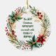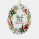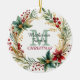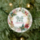 Voici un magnifique ornement personnalisé pour ce rassemblement de Noël familial spécial. Le milieu avant tient votre monogramme en vert pâle, avec votre nom de famille écrit en vert foncé dessus, et NOËL en rouge sous lui. Le regroupement est encadré d'une jolie couronne de Noël couleur aquarelle et poinsettia. Le dos de l'ornement a la même image de couronne avec votre texte personnalisé en vert.