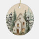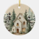 A rustic watercolor white house and evergreen trees make these Christmas ornaments perfect for farmhouse lovers, new home owners and modern organic enthusiasts. Easily customize to include your picture and message.