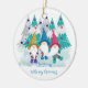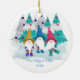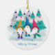 Un joli ornement de Noël gnome que vous pouvez personnaliser au dos avec votre nom et l'année. Le design a le plaisir de dire "Noël avec mes Gnomies" avec un dessin sidéral de gnomes colorés dans une forêt d'arbres de Noël.