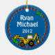 Un cadre photo de Noël en backhoe aux couleurs vives pour "le premier bébé" ou l'âge de n'importe quel enfant. Customisez le texte sur le dos de l'ornement pour dire ce que vous voulez.