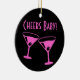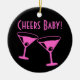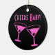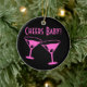 Noël Cheers bébé Neon roses lunettes de cocktail en céramique Ornement. Personnalisez avec du texte personnalisé ou une photo au dos.