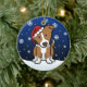 Ornement Brown mignon de Noël de border collie, dessiné dans la bande dessinée de kawaii ! Cette race adorable de chien utilise un casquette rouge de Père Noël, et les flocons de neige tombent tout autour de lui. Absolument chéri, parfait pour l'arbre de Noël de l'amoureux des chiens !