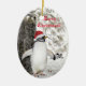Un pingouin mignon un casquette de Père Noël de port se tenant sous un arbre neigeux.